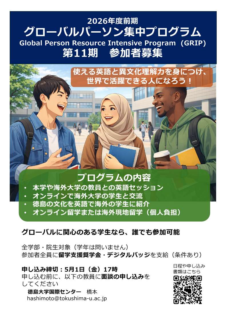 2026年度前期(第11期生) グローバルパーソン集中プログラム(GRIP)の募集について