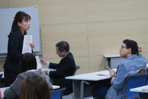 2019年度第1回留学生のための就職支援セミナー「日本の就職活動を学ぼう!」を5月10日(金)に実施し、留学生16名が参加しました。今回は、キャリアプランニング(岡山市)の張艶利(ちょう えんり)氏に日本での就職に関する基礎知識ついて講義を行っていただき、就職活動の基本スケジュール、内定までのステップ、在留資格に関する注意点などについて学ぶことができました。