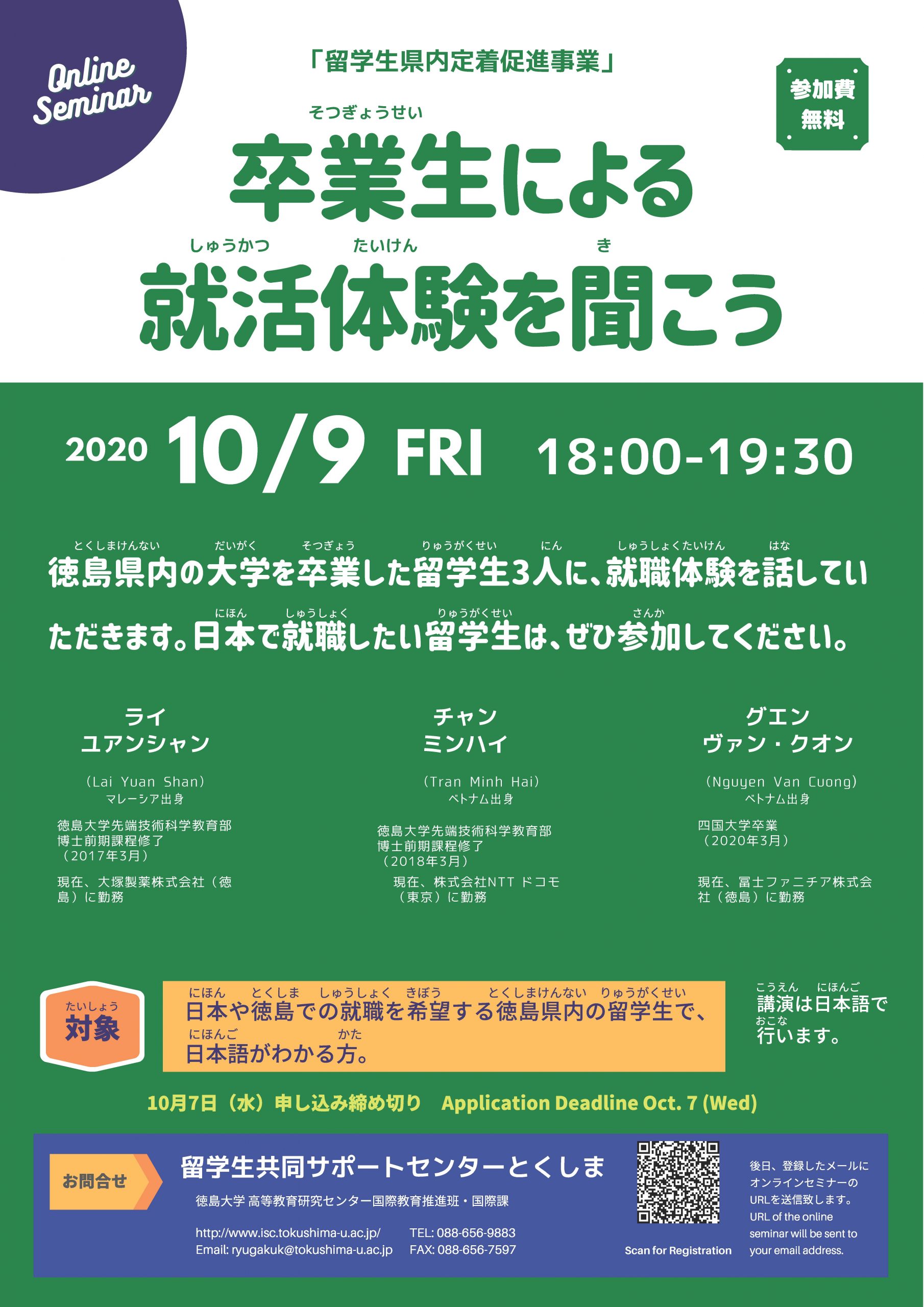 〈留学生共同サポートセンターとくしま主催〉【10月9日開催】就職支援セミナー(オンライン)を開催します。