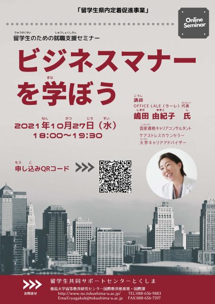 留学生のための就職支援セミナー「ビジネスマナーを学ぼう」を開催します。