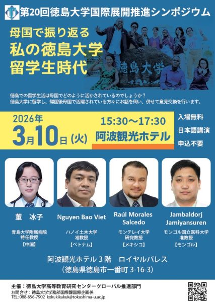 第20回徳島大学国際展開推進シンポジウムを開催します。