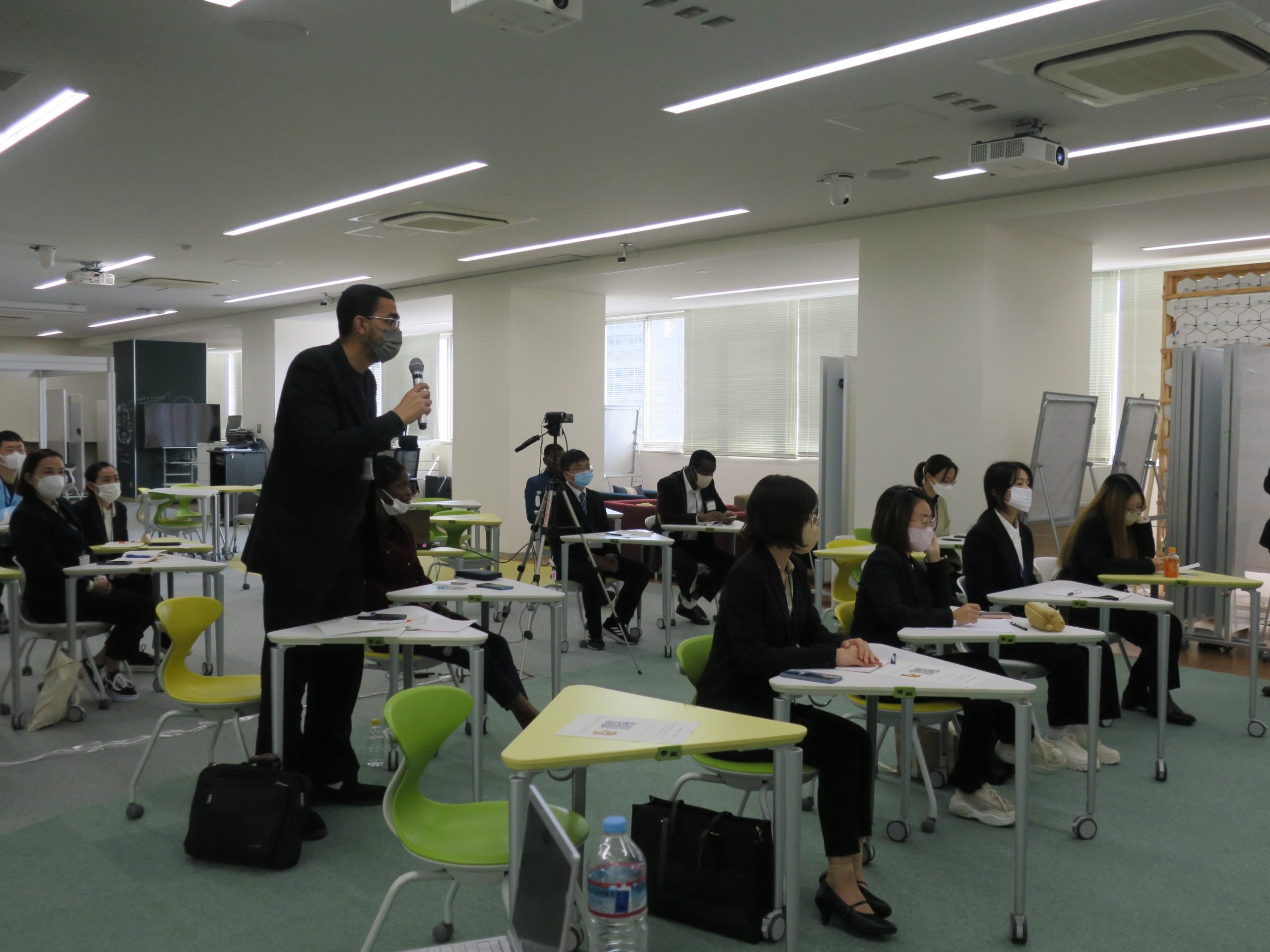 質疑の時間では、留学生から「母国語、日本語に加え英語はどのくらいのレベルが必要かでしょうか。」、